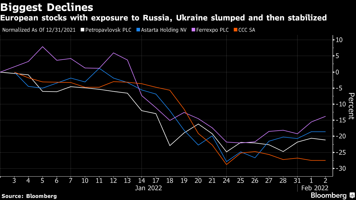 (Bloomberg) -- A potential escalation of the standoff at Ukraine’s border risks hitting economies and companies around the world, and catching a number of investors off guard.
