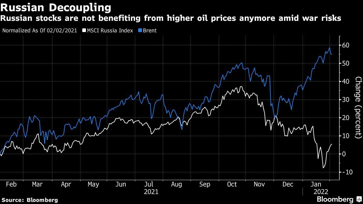 The long-simmering tensions over Russia’s troop buildup in the region has the potential to trigger a new bout of market volatility, just as equity markets struggle to digest a less favorable macroeconomic backdrop, which sparked the recent rout.