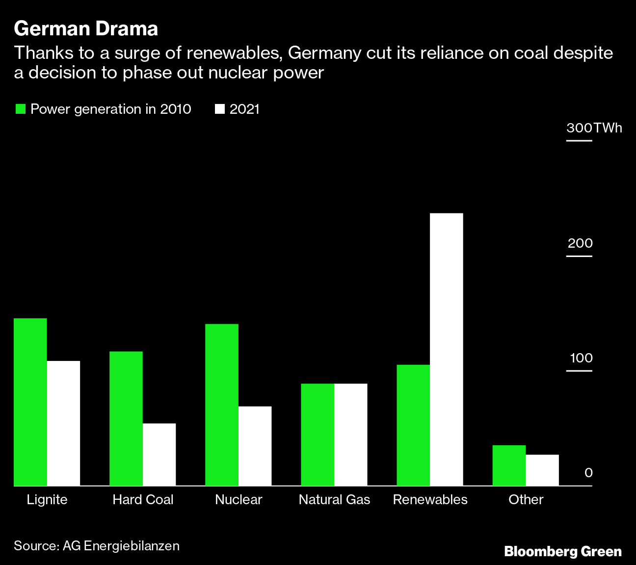 What many miss is that nuclear-forward countries aren't always doing better. While Germany's nuclear power generation in 2021 was 60% lower than its peak, the U.K.'s was 50% lower and Japan's 87% lower. If things go to plan, both the U.K. and Japan will see nuclear play a longer and bigger role in the transition. Germans are happy to sit this one out, and perhaps pay for energy storage to back up renewables.