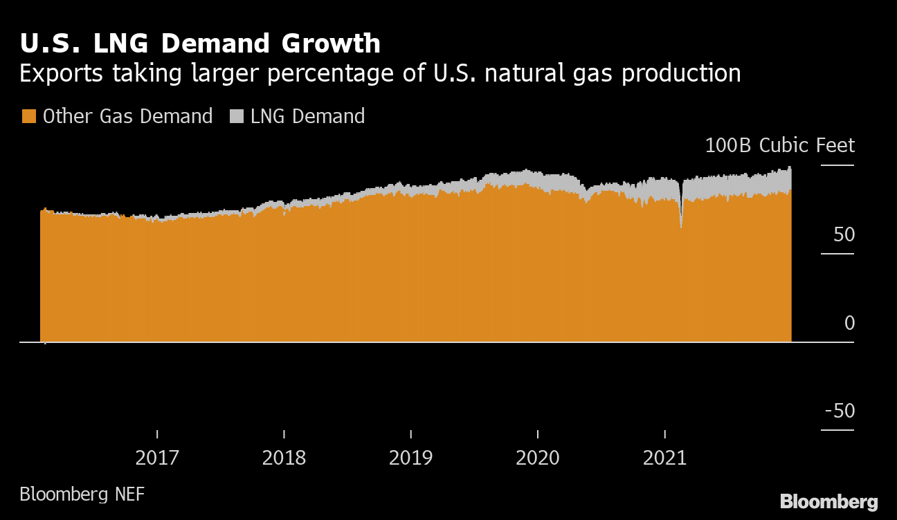 Overseas buyers purchased 13% of U.S. gas production in December, a seven-fold increase from five years earlier when most of the infrastructure required to ship the fuel out of the country didn’t yet exist. Prior to the advent of the American gas-export business, the U.S.-Canada market was a provincial sphere where prices were dictated by cold snaps in places like Pittsburgh and Chicago, and hurricanes in the Gulf of Mexico. But those days are long gone as brokers in Seoul and Rotterdam shell out record amounts to entice tankers laden with U.S. gas to sail their way.