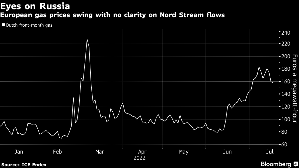 “The market is reassessing the risk of Nord Stream 1 not reopening on Thursday,” said Ole Hansen, head of commodity strategy at Saxo Bank A/S. “In addition, continued talk about the turbine being delivered from Canada has lowered the geopolitical temperature somewhat.”