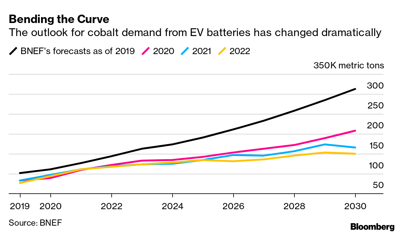 Expected cobalt demand from EVs is dropping.