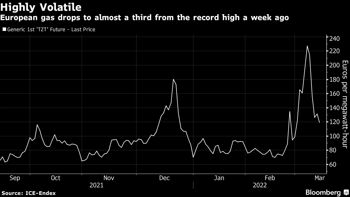 Russia�s invasion of the neighboring country roiled commodity markets from gas to grains, with sanctions aimed at isolating Moscow putting traders on edge. A fourth day of negotiations between Ukraine and Russia paused on Monday, but that was made so each side could take stock.�