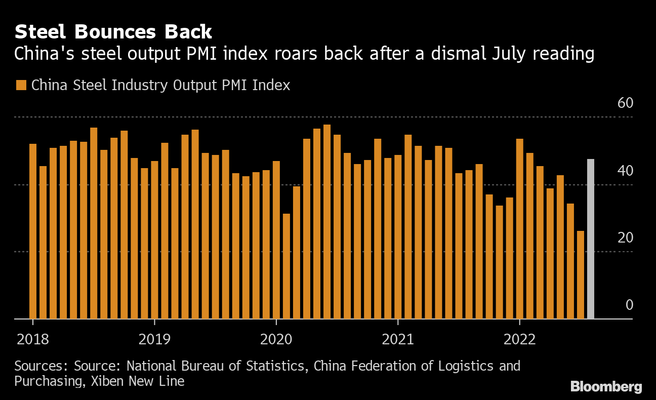 This week’s purchasing managers’ indexes suggest some grounds for optimism that conditions have at least bottomed. The steel reading in August showed that the industry was still shrinking, but the pace of the decline narrowed sharply and, lockdowns permitting, China is now heading into one of its peak periods for construction activity. Traders will look to the trade data to see if that has translated into more overseas demand for items like iron ore and copper.