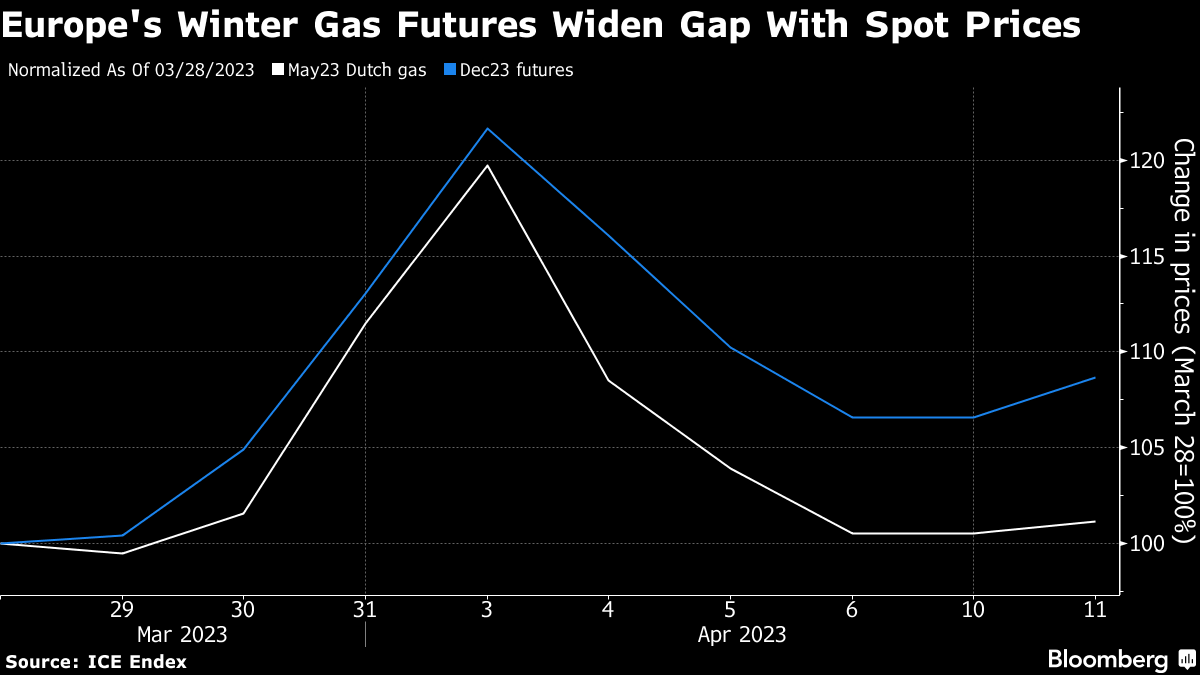 That shows worries over Europe’s second winter without normal flows from former top supplier, Russia, have yet to disappear. High stockpiles and muted demand are keeping a lid on prompt prices for now. But traders are closely watching a potential rebound in rival Asian markets, as well as the possibility of higher fuel usage in power generation and the industrial sector.