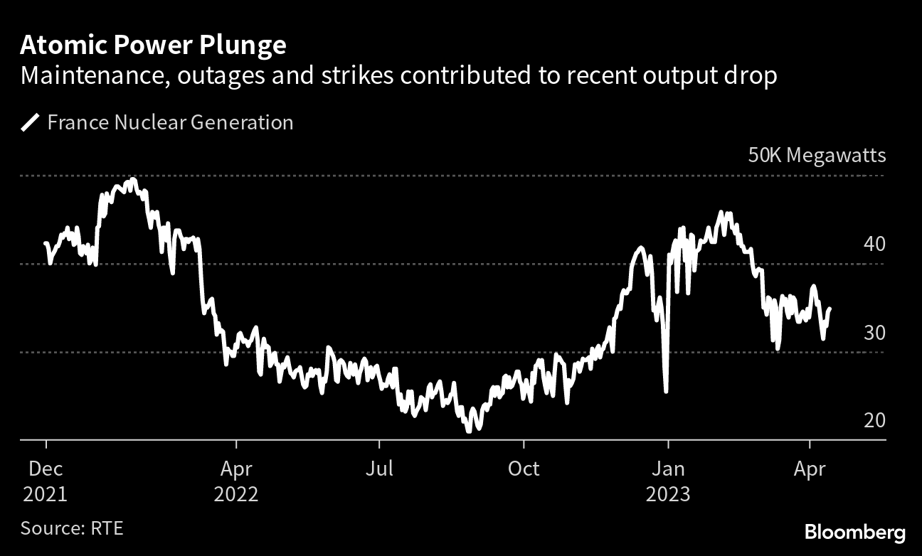 The strikes have further dented production and reactor restarts in recent months. As a result, EDF’s atomic output fell 7.4% in the first quarter from a year earlier, according to the utility, reviving concerns about nuclear power supply in the near term.