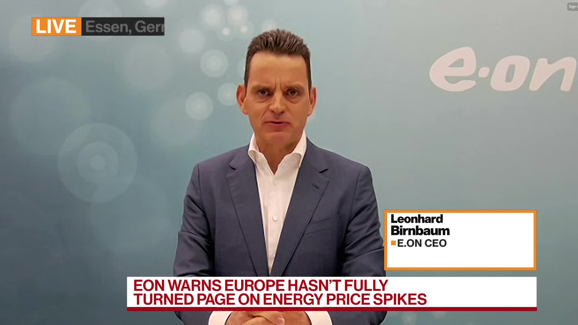 (Bloomberg) -- EON SE said that Europe’s energy market is still at risk of spiking prices this winter and urged homes and businesses to continue to conserve gas and power.