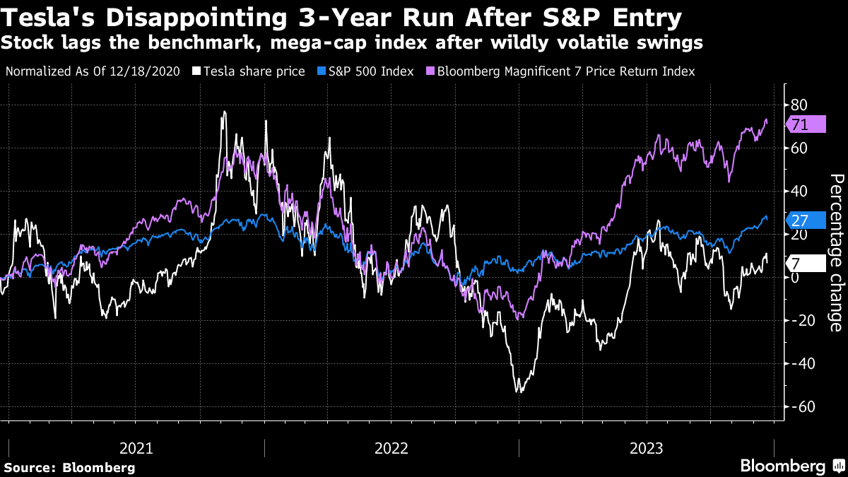 Tesla Getting Trounced by S&P 500 Three Years After Joining