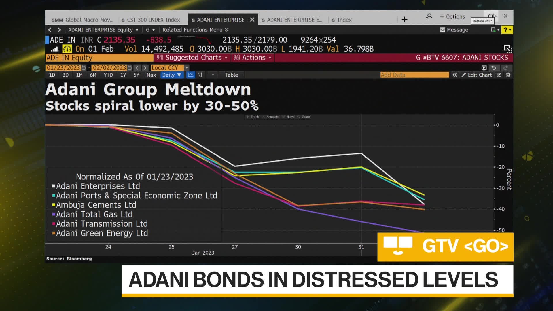 The Adani group’s stocks now make up eight of the worst 10 performers in the MSCI Asia Pacific Index this year. The bonds issued by some of the group’s companies fell to distressed levels in US trading, while the flagship on Wednesday canceled its record 200 billion rupee ($2.4 billion) follow-on public offering of shares.