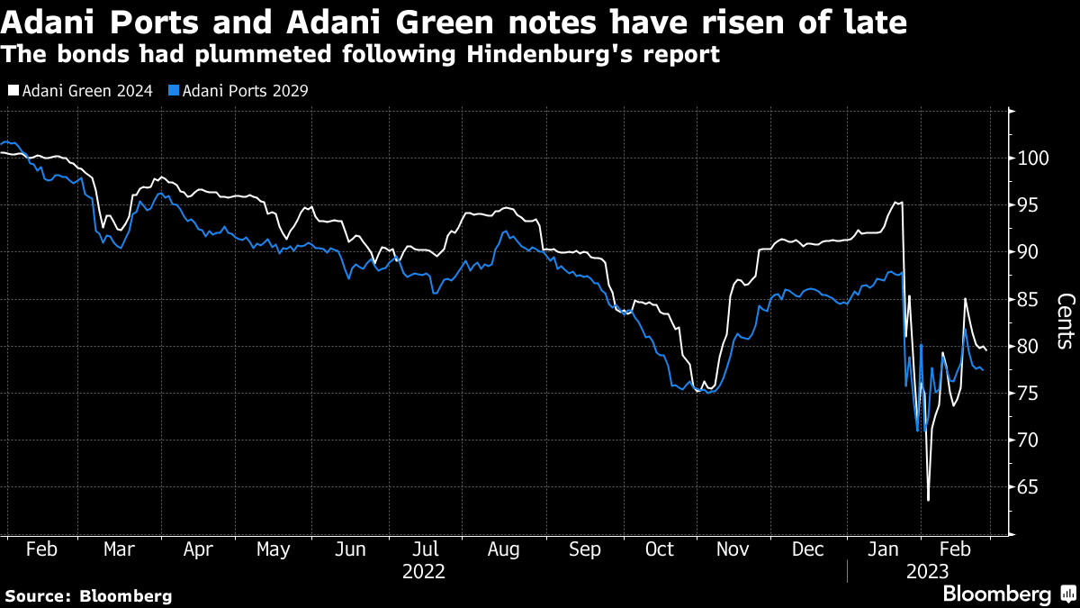 (Bloomberg) -- Most Adani Group stocks fell as the embattled Indian conglomerate kicked off a charm offensive with fixed-income investors in Asia, its latest effort to stem the fallout from a short-seller’s attack.