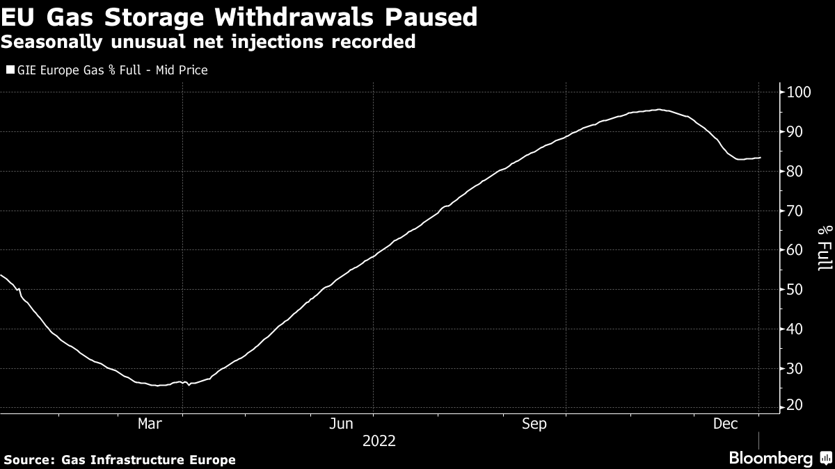 European prices had a record monthly decline in December, bringing relief to consumers and governments after a brutal year when they rose to record levels over the summer. Still, they’re much higher than the typical levels for the time of year, and any disruption in supplies could tighten the market again.