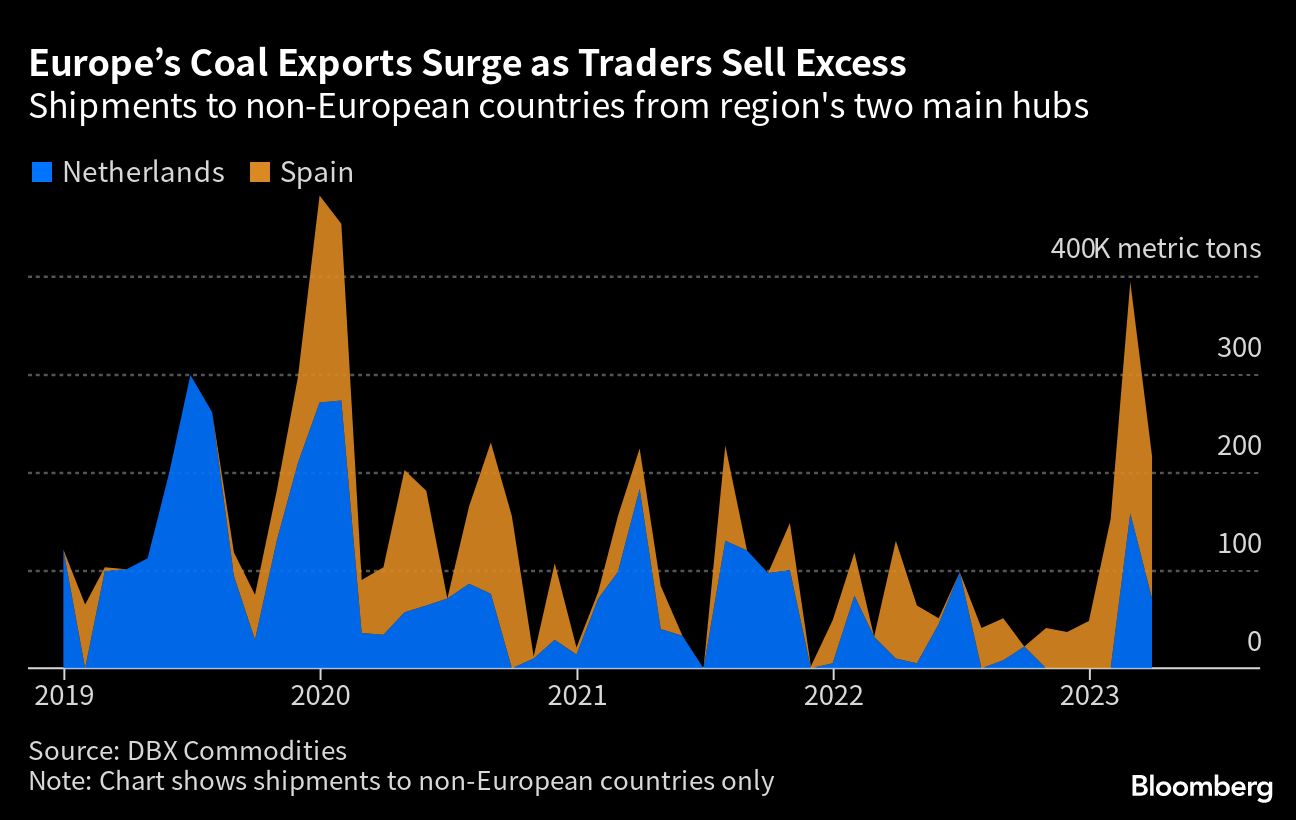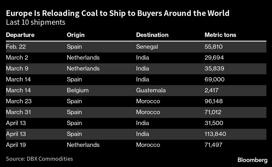 As concern over energy shortages eased following the continent’s mild winter, imported thermal coal started to be re-loaded at European harbors for markets such as Morocco, Senegal and Guatemala — a reversal in the fossil fuel’s usual flows.