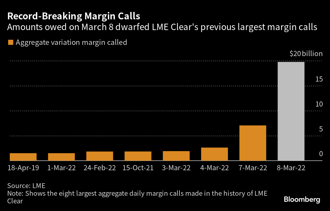 Its handling of the saga has been criticized by everyone from the International Monetary Fund to Citadel Securities’ Ken Griffin. And the crisis threatened the existence of the 146-year-old LME itself. In the words of its chief risk officer, the situation carried “a significant risk of market collapse leaving the LME unable to function as a venue for the world’s non-ferrous metals markets.”