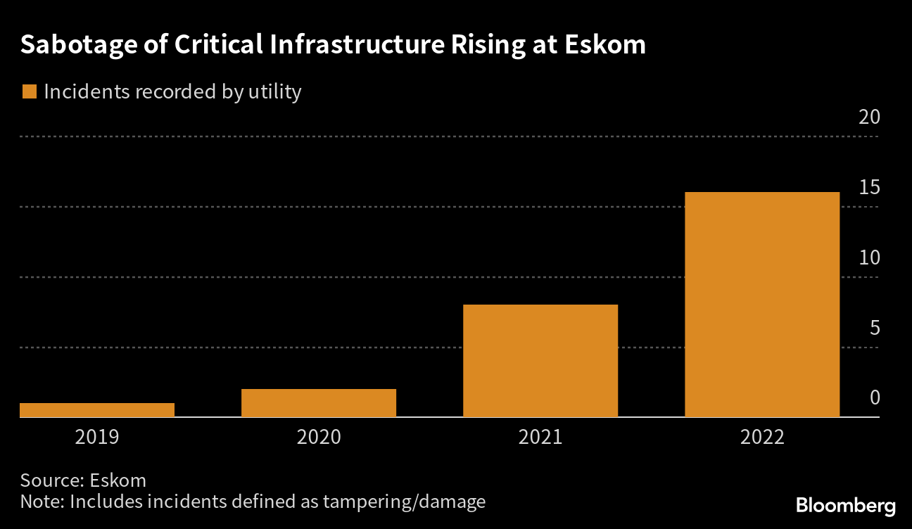 The continent’s most industrialized economy is already experiencing its worst bout of power rationing yet, with outages this year exceeding those for all of 2022, because Eskom can’t meet demand from its old and poorly maintained plants. The central bank estimates that the outages will shave 2 percentage points off South Africa’s economic growth rate this year.