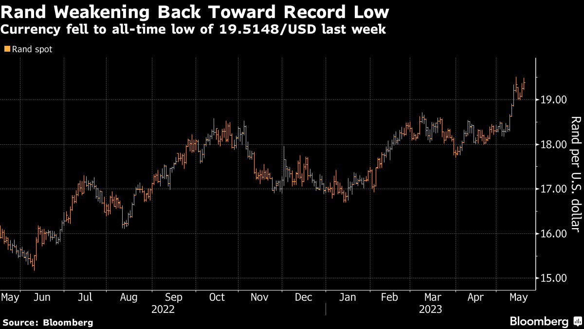 The blackouts and the deteriorating economic outlook have weighed on investor sentiment, with the rand dropping 12% this year — the worst performance among major currencies monitored by Bloomberg. The decline is also at odds with emerging-market peers, which have largely made strides against the US currency this year.
