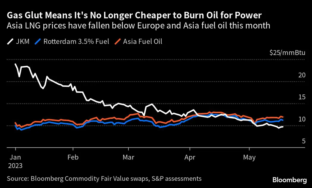 Many developing nations have gas-to-power projects that can burn either fuel oil or LNG, said Chris Strong, partner at law firm Vinson & Elkins LLP in London, who specializes in energy transactions. That’s giving them the flexibility to quickly react to spot gas prices dropping below $10 per million British thermal units, and comes just in time for increased electricity demand as summer heat sweeps across Asia.