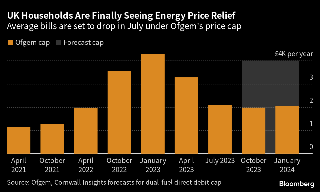 (Bloomberg) -- British consumers are set to see a big drop in energy bills that have been crippling household budgets since the start of the war in Ukraine.