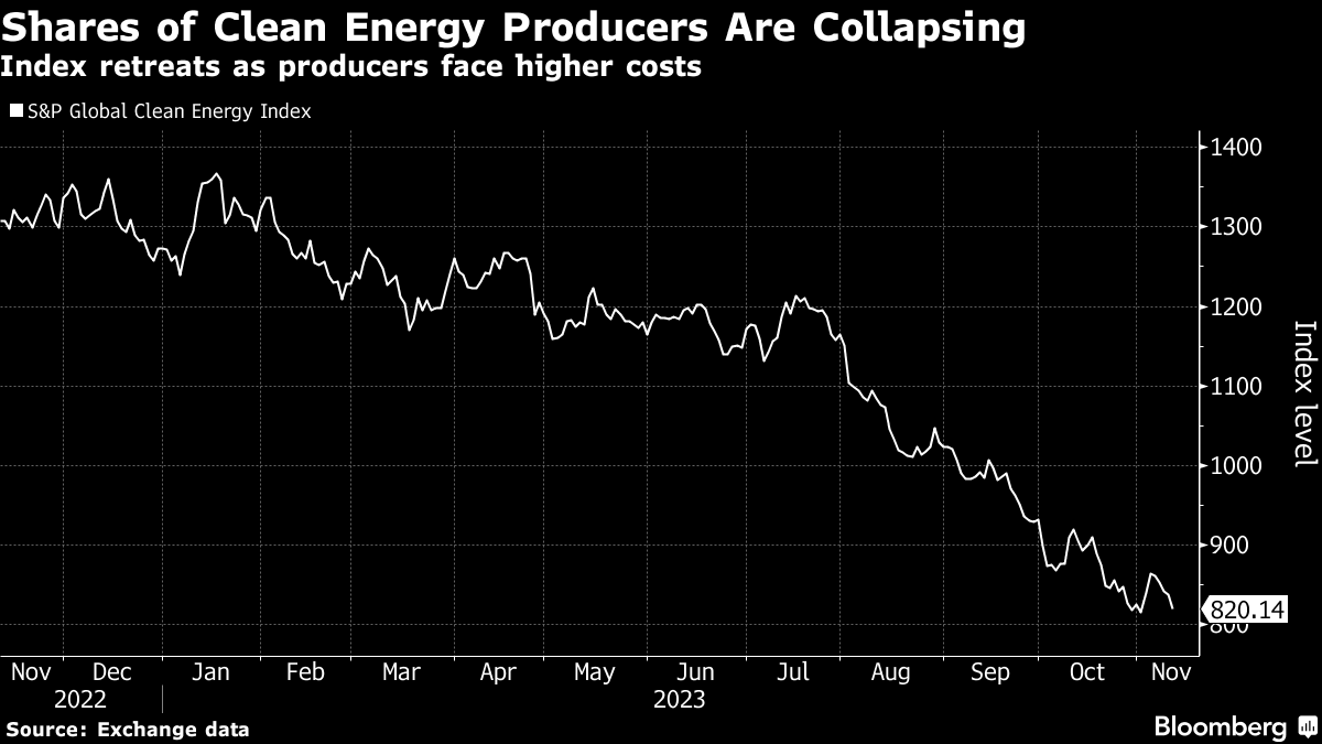 The S&P Global Clean Energy Index has fallen about 35% this year.