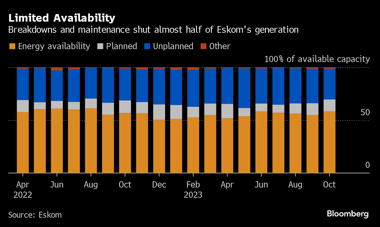 Eskom began intensifying power cuts in the fourth quarter of 2022, with inhabitants of Africa’s most industrialized economy being subjected to outages of up to 12 hours a day. The company spent more than $1 billion in the last financial year running its diesel-powered units as its fleet of coal-fired facilities experienced frequent breakdowns.