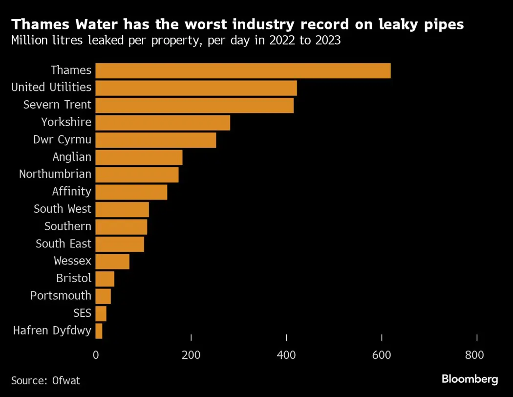 (Bloomberg) -- The debt crisis at Thames Water is jeopardizing £100 billion ($125 billion) of potential investment required over the next five years to mend Britain’s crumbling utilities infrastructure.