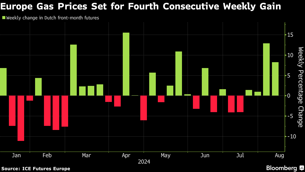 This week, an incursion by Ukraine into Russia’s bordering Kursk region put a key gas transit point at risk. While Russian flows through the Sudzha point are continuing for now, traders are bracing for a possible halt, which would hurt European economies that still depend on the fuel. Moldova put its gas sector on “early alert” on Thursday.