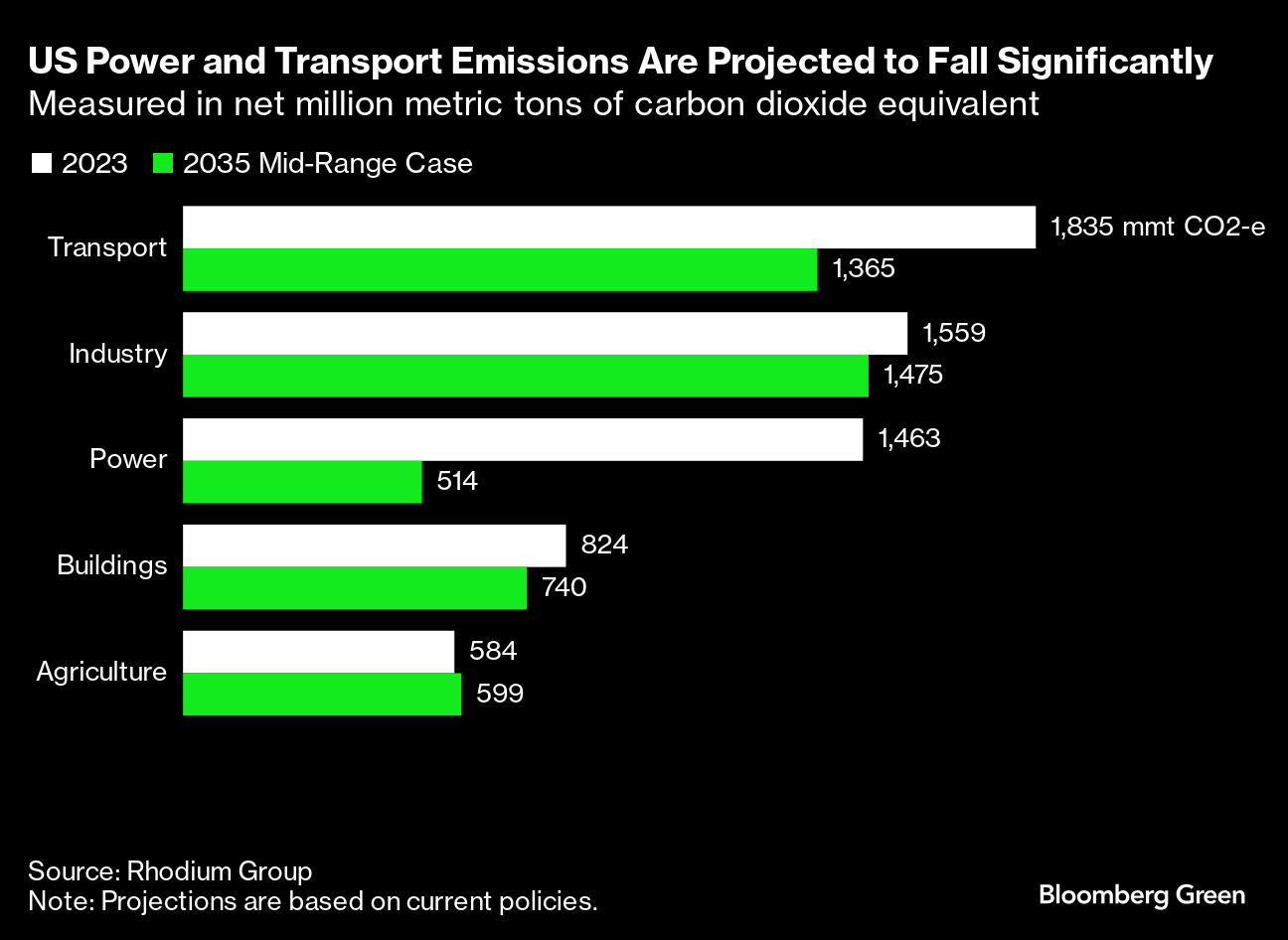 (Bloomberg) -- US greenhouse gas emissions are not falling fast enough to meet the Biden administration’s goal of cutting greenhouse gas pollution by at least half in 2030, compared with 2005 levels, according to new analysis by research firm Rhodium Group.