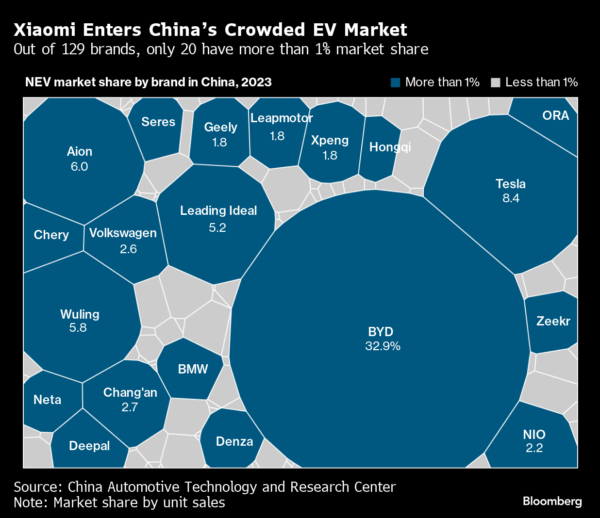 Xiaomi Corp. is set to start selling its first electric vehicle in China, the world’s largest EV market dominated by Tesla and BYD Co. The strength of initial orders and consumer feedback for its SU7 sedan will be of keen interest to investors, with China’s market projected to slow for a second year.