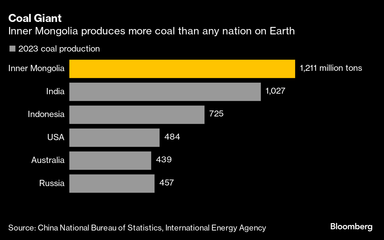 Inner Mongolia, which leads China in coal production this year, already has 88 gigawatts of wind and solar capacity, with another 170 gigawatts in the pipeline. That’s a combined total that would dwarf the power fleet of Germany.