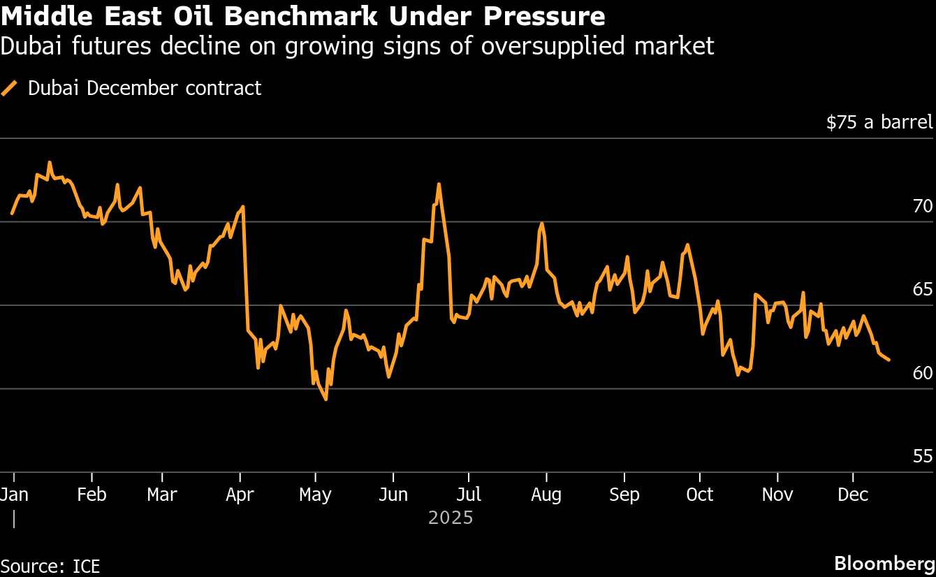 (Bloomberg) -- The Middle East’s Dubai oil benchmark is showing signs of worsening oversupply, adding to a slew of indicators pointing to a global glut.