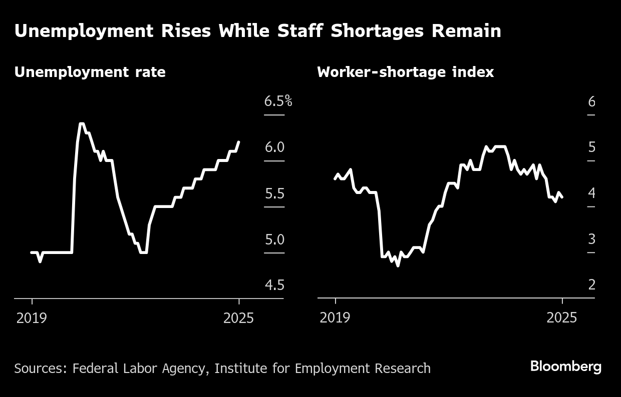 For all of Germany’s arguments about debt and worries over growth, the labor market has been a bright spot. That’s partly because of staff shortages for companies in the aftermath of the pandemic, which made them wary of shedding workers.