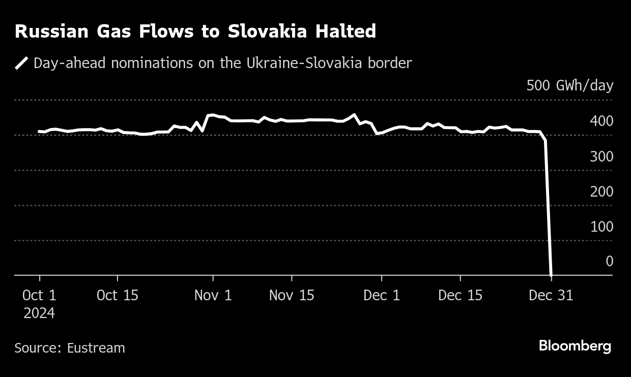 Benchmark prices rose to the highest since October 2023, before erasing most of the advance. Russian gas deliveries across Ukraine halted on New Year’s Day after a transit contract between the two warring nations expired, with no alternative in place.