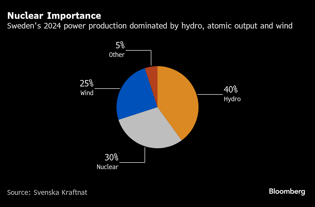 Sweden’s center-right coalition is going all in with a goal to have several new reactors online by the middle of the next decade. The government expects power demand to double to about 300 terawatt-hours by around 2045.