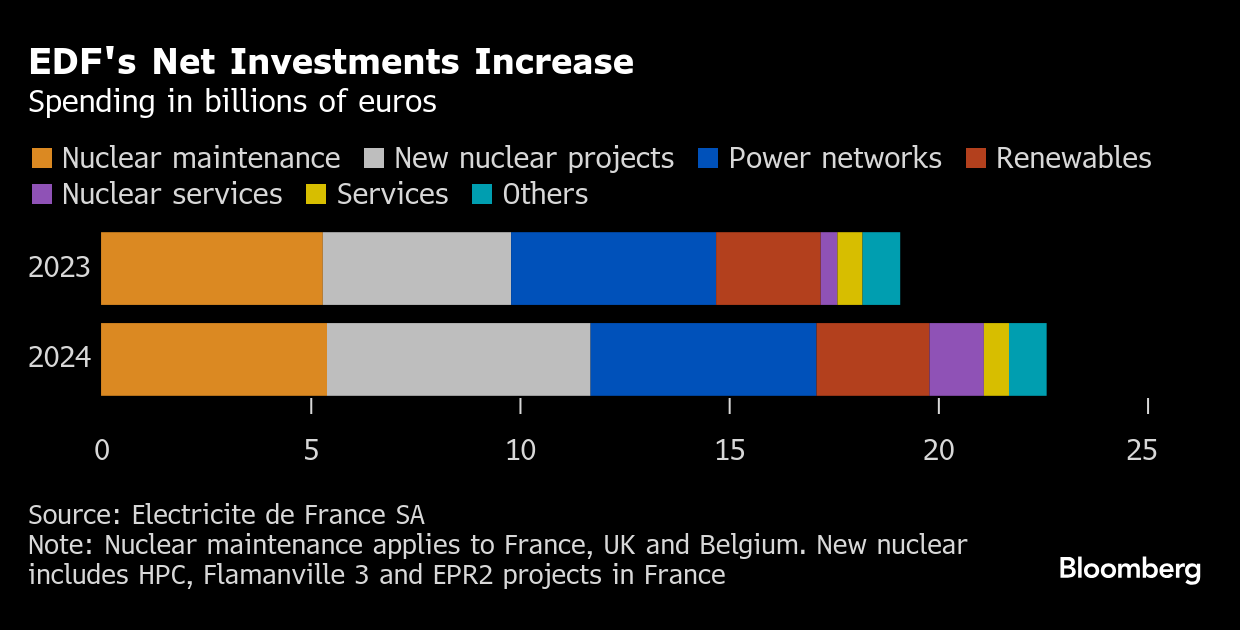 The utility already invested a net €22.4 billion ($26 billion) last year, mostly in the maintenance and upgrade of France’s 57 existing nuclear plants, power grids and the construction of two reactors in the UK. Capital expenditure on renewables represented just 12% of the total.