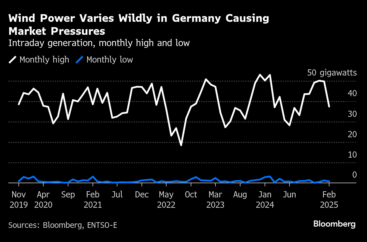 That degree of forecasting prowess will could prove essential to managing market volatility. Earlier this month, robust generation from solar parks in Germany pushed power prices in several countries below zero. That was a reversal from earlier in the year, when a stretch of cloudy and windless weather known as a Dunkelflaute curbed renewable output and sent German electricity prices soaring.