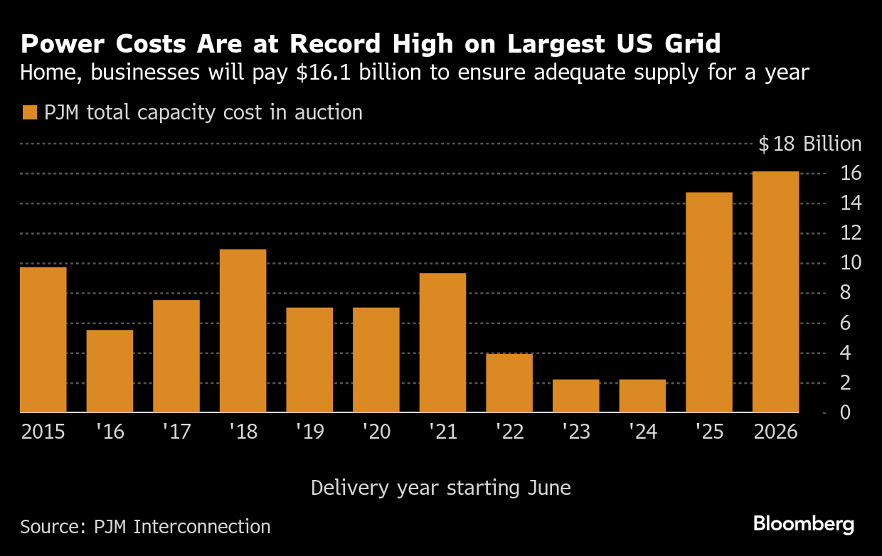 They’re also the source of much of the criticism about spiking costs. In 2024 and 2025, the price of power from the auctions reached record levels, totaling $30.8 billion over both years. More than half of that amount came from data-center demand, according to a report by Monitoring Analytics, the independent watchdog for PJM.