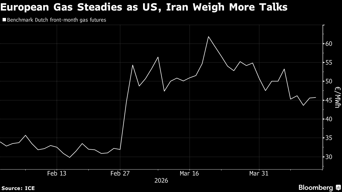 (Bloomberg) -- European natural gas steadied as broader markets weighed efforts by the US and Iran to make their way back to the negotiating table.