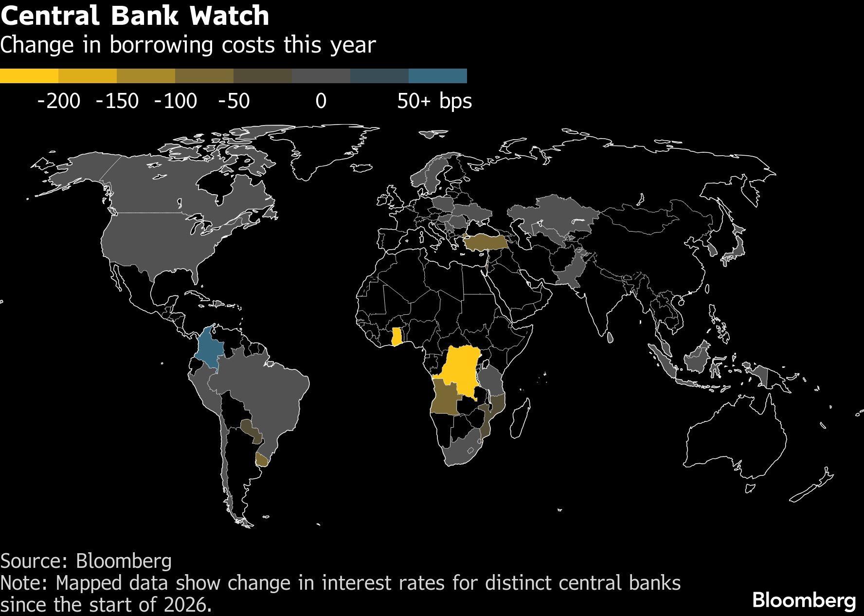 In addition to the Fed, central banks in Canada, Sweden, Brazil, Chile, Hungary, Sri Lanka, Pakistan, Uzbekistan, Kyrgyzstan, South Africa, Lesotho and Eswatini kept interest rates unchanged. Officials in Ghana, Mozambique and Ukraine lowered borrowing costs. Colombia surprised all analysts with a full percentage-point hike.