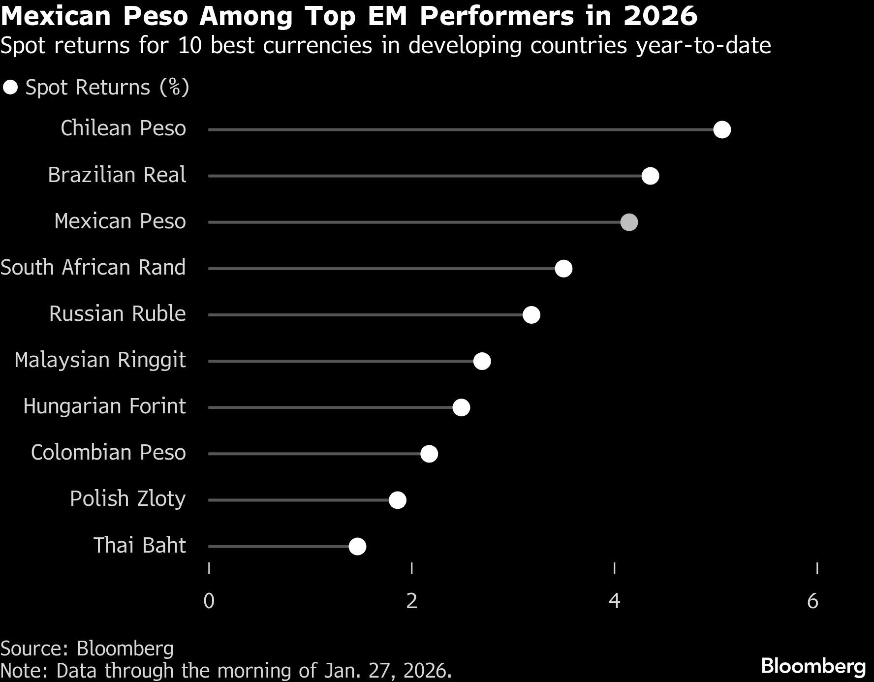 Investors are betting Mexican President Claudia Sheinbaum’s ability to defuse disputes with Donald Trump will help extend one of the best currency rallies in emerging markets this year.