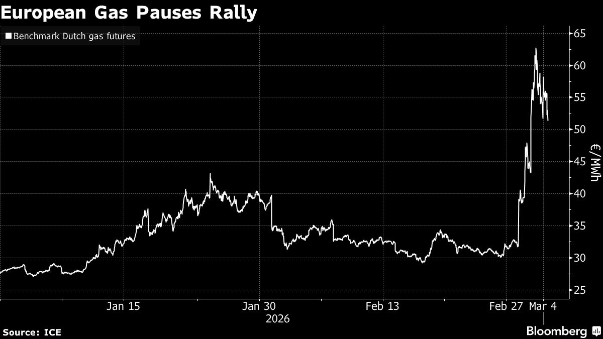 (Bloomberg) -- European natural gas halted its biggest rally in four years after a report that Iran is ready to discuss ending the conflict that has rattled energy markets.