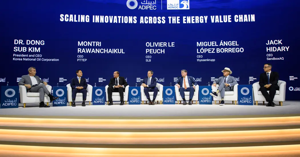 Top leaders from across the energy and technology sectors gathered for a high-impact session featuring Dr. Dong Sub Kim (KNOC), Miguel Ángel López Borrego (thyssenkrupp), Olivier Le Peuch (SLB), Montri Rawanchaikul (PTTEP), Jack Hidary (SandboxAQ), and Olivier Oullier, PhD (Inclusive Brains), joined by moderator Manus Cranny (The National), to tackle the pressing challenge of moving energy innovations from pilots to full-scale impact.